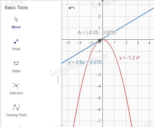 3. \(y = - 1,2{x^2}\) và \(y = 0,6x + 0,075\)