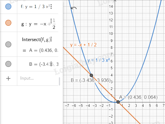 1. \(y = \frac{1}{3}{x^2}\) và \(y = - x + \frac{1}{2}\).