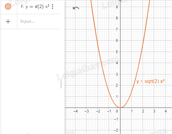 Nhập lệnh: \(y = \sqrt 2 *x\^2\)