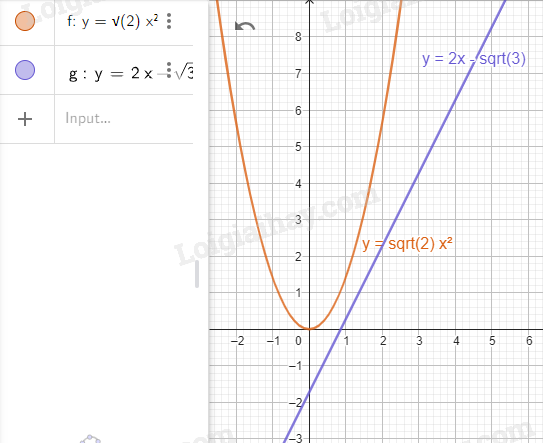 2. \(y = \sqrt 2 {x^2}\) và \(y = 2x - \sqrt 3 \)