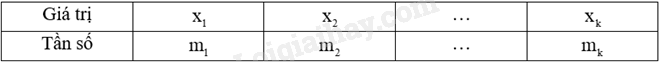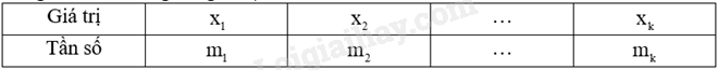 Trong đó, \({m_1}\) là tần số của \({x_1}\), \({m_2}\) là tần số của \({x_2}\),…, \({m_k}\) là tần số của \({x_k}\).