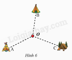 Điểm tập kết cách đều 3 lều tức khoảng cách từ điểm tập kết đều mỗi lều là như nhau tam giác. Điểm tập kết O là tâm đường tròn ngoại tiếp tam giác ABC.