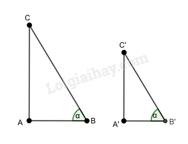 Cho tam giác ABC vuông tại A và tam giác A’B’C’ vuông tại A’ có \(\widehat B = \widehat {B'} = \alpha .\) Chứng minh rằng: