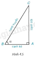Xét góc C của tam giác ABC vuông tại A (H.4.3) . Hãy chỉ ra cạnh đối và cạnh kề của góc C.