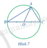 Cho tam giác ABC vuông tại A. Gọi O là trung điểm của BC (hình 7). Đường tròn (O; OB) có phải là đường tròn ngoại tiếp tam giác ABC hay không?