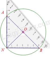 Đặt đỉnh vuông của eke trùng với một điểm N bất kỳ trên đường tròn, kẻ đường thẳng đi qua cạnh huyền của êke cắt đường tròn tại A và B ta được đường kính AB.