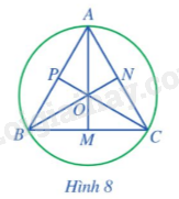 Cho tam giác đều ABC cạnh a, ba đường trung tuyến AM, BN, CP cắt nhau tại trọng tâm O (Hình 8).