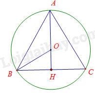 Kẻ đường trung trực AH của tam giác ABC suy ra \(O \in AH,\widehat {OHB} = 90^\circ .\)
