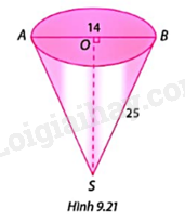 Tìm bán kính đáy và chiều cao của hình nón trong Hình 9.21.