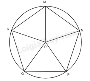 Các cung \(\overset\frown{MN}, \overset\frown{NP}, \overset\frown{PQ}, \overset\frown{QR}, \overset\frown{RM}\) chia đường tròn (O; R) thành 6 cung có số đo bằng nhau, suy ra số đo mỗi cung là 360o : 5 = 72o.