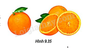 Quan sát Hình 9.35, hãy cho biết khi bổ quả cam có dạng hình cầu thì mặt cắt của quả cam có dạng hình gì.