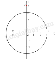 Trong mặt phẳng tọa độ Oxy, cho các điểm A(3;0), B(- 2;0), C(0;4). Vẽ hình và cho biết trong các điểm đã cho, điểm nào nằm trên, điểm nào nằm trong, điểm nào nằm ngoài đường tròn (O; 3)?