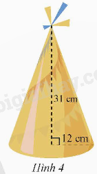 Độ dài đường sinh là: l = \(\sqrt {{{12}^2} + {{31}^2}} = \sqrt {1105} \) (cm).