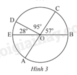 Suy ra ta có \(\widehat {EOA} = {180^o} - \widehat {COD} - \widehat {DOE} = {180^o} - {95^o} - {28^o} = {57^o}\)