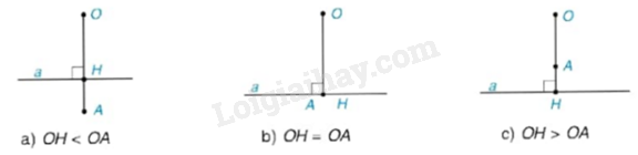 Cho đường thẳng a và điểm O. Gọi H là chân đường vuông góc hạ từ O xuống a, và A là một điểm thuộc tia OH. Trong mỗi trường hợp sau đây, hãy vẽ đường tròn (O; OA) và cho biết đường thẳng a và đường tròn (O; OA) có bao nhiêu điểm chung?