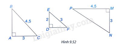 Hãy chỉ ra các cặp tam giác vuông đồng dạng với nhau trong Hình 9.52, viết đúng kí hiệu đồng dạng.
