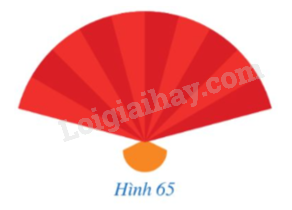 Hình quạt tô màu đỏ ở Hình 65 có bán kính bằng 2 dm và góc ở tâm bằng \(150^\circ \).