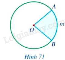 Quan sát Hình 71, hãy cho biết phần hình tròn \(\left( O \right)\) tô màu xanh được giới hạn bởi hai bán kính và cung nào?