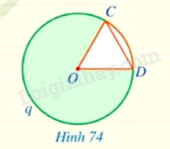 Cho hình quạt tròn \(COD\) giới hạn bởi hai bán kính \(OC,OD\) và cung \(CnD\) sao cho \(OC = OD\) (Hình 74). Hãy tìm số đo cung \(CqD\) ứng với hình quạt đó.