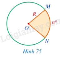 b) Diện tích hình quạt tròn tâm \(O\), bán kính \(R\), có số đo cung là \(n^\circ \) là: \(S = \frac{{\pi {R^2}n}}{{360}}\).