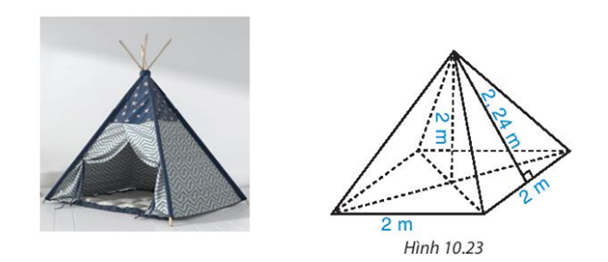 Một chiếc lều có dạng hình chóp tứ giác đều, cạnh đáy bằng 2 m, chiều cao bằng 2 m
