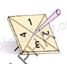 Bạn Minh Phong chơi trò quay một con quay dạng hình vuông mà bốn phần được đánh số như hình bên và quan sát cạnh song song với mặt đất khi con quay dừng. Khi con quay có cạnh của hình vuông thuộc phần ghi số 4 song song với mặt đất thì Minh Phong thắng.