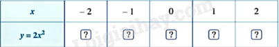 b), c) Bước 1: Thay từng giá trị x vào hàm số \(y = 2{x^2}\) ta tìm được giá trị y tương ứng.