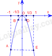 Vẽ các điểm \(A( - 1; - 3),B( - \frac{1}{3}; - \frac{1}{3}),O(0;0),D(\frac{1}{3}; - \frac{1}{3}),E(1; - 3)\) thuộc đồ thị của hàm số \(y = - 3{x^2}\)trong mặt phẳng tọa độ Oxy.