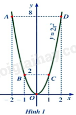 - Quan sát Hình 1, vẽ đường cong như ở Hình 1 đi qua 5 điểm A, B, O, C, D. Đường cong đó được gọi là đường parabol và đường parabol đó là đồ thị của hàm số(y = 2{x^2}).
