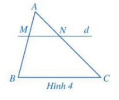 Trong Hình 4, chứng tỏ rằng nếu \(MN\parallel BC\) thì \(\frac{{MB}}{{AB}} = \frac{{NC}}{{AC}}\).