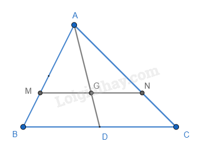 Cho tam giác ABC có G là trọng tâm. Đường thẳng qua G song song với BC lần lượt cắt AB, AC tại M, N. Chứng minh \( \frac{AM}{AB} = \frac{AN}{AC} = \frac{2}{3} \).