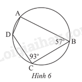 \(\widehat B + \widehat D = {180^o}\) suy ra \(\widehat D = {180^o} - \widehat B = {180^o} - {57^o} = {123^o}\).