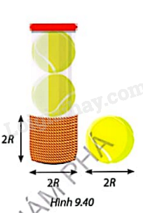 Bạn An cắt sợi dây dù tại điểm kết thúc quá trình cuốn dây quanh quả bóng, rồi lấy đoạn dây này cuốn từng vòng sát nhau quanh hộp hình trụ đựng quả bóng đó (Hình 9.40). Bạn An thấy rằng đoạn dây cuốn quanh hộp đựng bóng tạo thành một hình trụ có đường kính và chiều cao cùng bằng đường kính quả bóng.