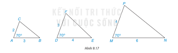 Qua sát hình 9. 17 và định lí trường hợp đồng dạng cạnh – góc – cạnh để tìm các cặp tam giác đồng dạng.