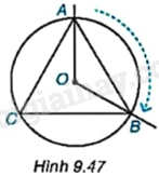Trên bàn xoay tâm O, vẽ tam giác đều ABC nội tiếp một đường tròn (O) và hai tia OA, OB (H.9.47). Khi quay bàn xoay thuận chiều kim đồng hồ để tia OA di chuyển trùng với tia OB (ở vị trí ban đầu), điểm A có di chuyển đến điểm B không và sẽ di chuyển trên cung tròn nào của đường tròn (O)? Khi đó, điểm C sẽ di chuyển đến vị trí của điểm nào?
