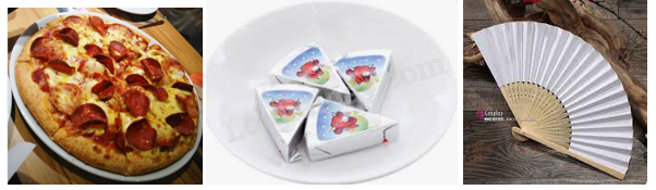 Một số hình ảnh của quạt tròn trong thực tế: Bánh pizza, bánh phô mai con bò cười, quạt gấp,….
