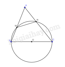 Cho tam giác nhọn \(ABC\). Đường tròn tâm \(O\) đường kính \(BC\) cắt các cạnh \(AB\) và \(AC\) lần lượt tại \(M\) và \(N\). Chứng minh \(MN < BC\).