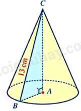 Xét hình nón có đường sinh \(CB = 13cm\) và chiều cao \(CA = 12cm\).