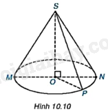 Kể tên các bán kính đáy và đường sinh còn lại của hình nón trong Hình 10.10.
