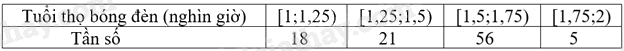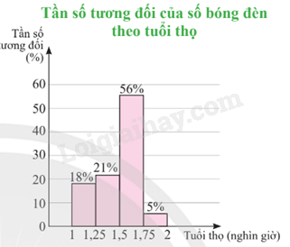 Biểu đồ cột bên mô tả tuổi thọ (đơn vị: nghìn giờ) của 100 chiếc bóng đèn dây tóc trong một lô sản xuất.