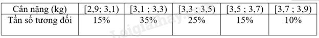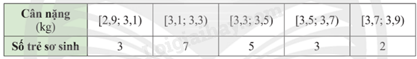 Bảng tần số ghép nhóm sau biểu diễn kết quả khảo sát cân nặng (đơn vị: kg) của một số trẻ sơ sinh ở một khu vực: