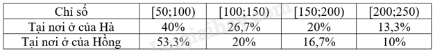 Hai bạn Hà và Hồng thống kê lại chỉ số chất lượng không khí (AQI) nơi mình ở tại thời điểm 12:00 mỗi ngày trong tháng 9/2022 ở bảng sau: