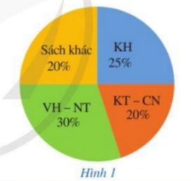 Bạn Châu vẽ biểu đồ hình quạt tròn như ở Hình 1 để biểu diễn tỉ lệ các loại sách trong thư viện: Khoa học (KH); Kĩ thuật và Công nghệ (KT – CN); Văn học và Nghệ thuật (VH – NT); Sách khác. Hỏi những số liệu mà bạn Châu nêu ra trong biểu đồ hình quạt tròn ở Hình 1 đã chính xác chưa? Vì sao?