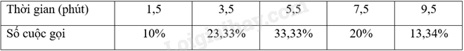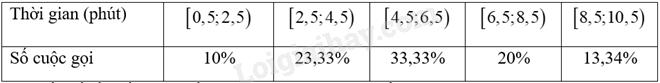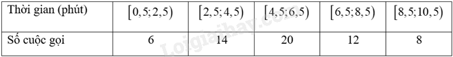 Cho bảng tần số ghép nhóm sau về thời gian gọi (phút) của một số cuộc gọi điện thoại
