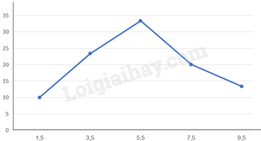 Bước 3: Với mỗi giá trị đại diện \({x_i}\) trên trục ngang và tần số tương đối \({f_i}\) tương ứng, ta xác định một điểm \({M_i}\left( {{x_i};{f_i}} \right)\). Nối các điểm liên tiếp với nhau.