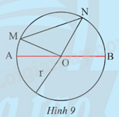 Trên đường tròn (O;R) lấy 4 điểm A, B, M, N sao cho AB đi qua O và MN không đi qua O (Hình 9).