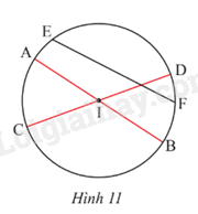 Cho đường tròn (I) có các dây cung AB, CD, EF. Cho biết AB và CD đi qua tâm I, EF không đi qua I (Hình 11). Hãy so sánh độ dài AB, CD, EF.