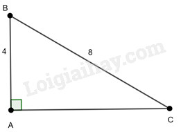 Ta có: \(\cos \widehat B = \frac{{AB}}{{BC}} = \frac{4}{8} = \frac{1}{2}\) suy ra \(\widehat B = {60^0}\)