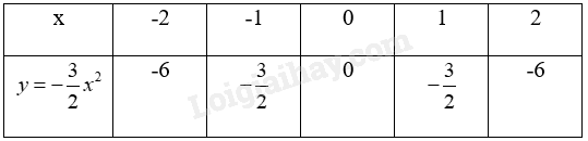 Thay lần lượt giá x vào hàm số \(y = - \frac{3}{2}{x^2}\)để tính y và lập bảng giá trị.
