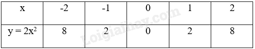 Đồ thị hàm số y = 2x2 là một đường parabol đỉnh O, đi qua các điểm trên và có dạng như dưới đây.